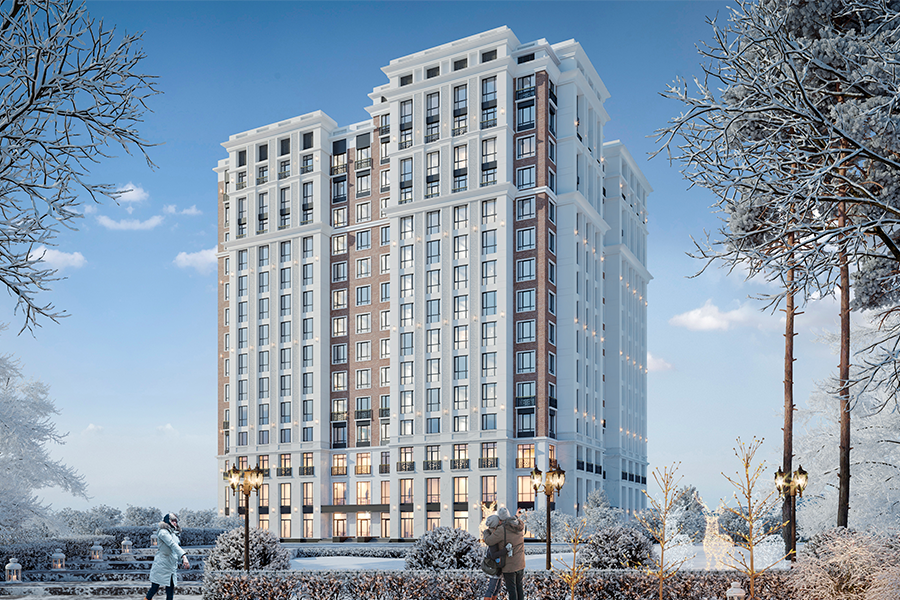 Первые 3 этажа фасадной части дома будут выполнены из мрамора, последующие – из широкоформатного керамогранита и клинкера. Предусмотрены скрытые ниши для кондиционеров. В доме продумана каждая деталь, чтобы создать идеальное пространство для вашего комфорта. Естественную освещенность комнатам придают потолки высотой 3,3 метра.